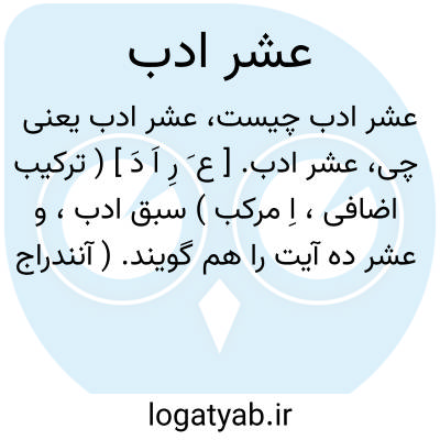 عشر ادب. [ ع َ رِ اَ دَ ] ( ترکیب اضافی، اِ مرکب ) سبق ادب، و عشر ده آیت را هم گویند. ( آنندراج ). رجوع به عُشر شود: