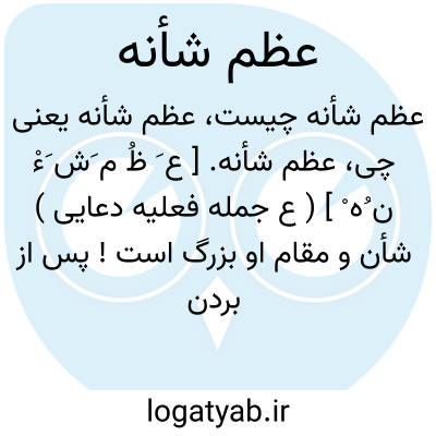 عظم شأنه. [ ع َ ظُ م َش َءْ ن ُه ْ ] ( ع جمله فعلیه دعایی ) شأن و مقام او بزرگ است ! پس از بردن نام ایزدتعالی، جل جلاله و عم نواله و عظم شأنه می آورند. ( یادداشت مرحوم دهخدا ).