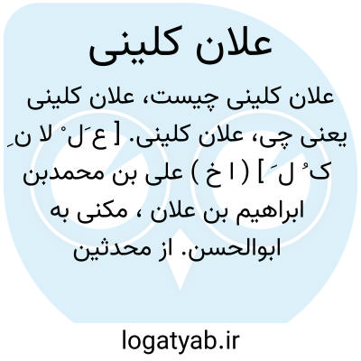 علان کلینی. [ ع َل ْ لا ن ِ ک ُ ل َ ] ( ا خ ) علی بن محمدبن ابراهیم بن علان، مکنی به ابوالحسن. از محدثین امامیه زمان غیبت صغری. وی دائی محمدبن یعقوب کلینی است. او راست: اخبار القائم ( ع ). ( از ریحانة الادب ج 3 ص 115 ).
