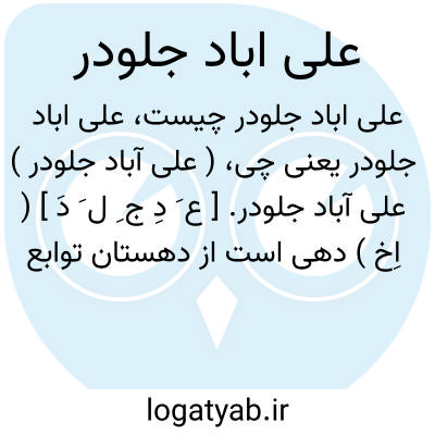 ( علی آباد جلودر ) علی آباد جلودر. [ ع َ دِ ج ِ ل َ دَ ] ( اِخ ) دهی است از دهستان توابع ارسنجان بخش زرقان شهرستان شیراز واقع در 77 هزارگزی خاور زرقان و در کنار راه فرعی ارسنجان به خفرک. ناحیه ایست جلگه و دارای آب و هوای معتدل و مالاریایی، و 86 تن سکنه. آب آن از قنات تأمین میشود. محصول آن غلات و چغندر است. اهالی به زراعت اشتغال دارند، و صنایع دستی آنان قالی بافی است. ( از فرهنگ جغرافیایی ایران ج 7 ).