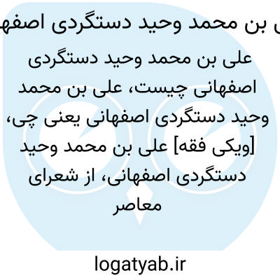 [ویکی فقه] علی بن محمد وحید دستگردی اصفهانی، از شعرای معاصر اصفهان بوده است.