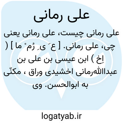 علی رمانی. [ ع َ ی ِ رُم ْ ما ] ( اِخ ) ابن عیسی بن علی بن عبداﷲرمانی اخشیدی وراق، مکنّی به ابوالحسن. وی ادیب و نحوی و لغوی و متکلم و فقیه و اصولی و مفسر و منجم و منطقی بود. اصل او از سرمن رأی ( سامراه ) است و در سال 296 هَ. ق. در بغداد متولد شد، معجم الادباء و مفتاح السعادة سال تولد او را 276 هَ. ق. ذکر کرده اند، وی نزد ابن السراج و ابن درید و زجاج تحصیل کرد. و دریازدهم جمادی الاولای سال 384 هَ. ق. در بغداد درگذشت. او راست: 1 - الاشتقاق. 2 - الجامعالکبیر فی التفسیر. 3 - شرح الصفات. 4 - المبتدا در نحو. 5- معانی الحروف. ( از معجم المؤلفین ). صاحب معجم المؤلفین به مآخذذیل نیز اشاره کرده است: عیون التواریخ شاکر ج 12 ص 233. الوافی صفدی ج 12 ص 133. فهرس المؤلفین بالظاهریة. طبقات النحاة و اللغویین ابن شهبة ص 436. الفهرست ابن الندیم ج 1 ص 63. معجم الادباء یاقوت ج 14 ص 73. المنتظم ابن جوزی ج 7 ص 176. تذکرةالحفاظ ذهبی ج 3 ص 182. نزهةالالبای انباری ص 389. میزان الاعتدال ذهبی ج 2 ص 235. النجوم الزاهره ابن تعزی بردی ج 4 ص 168. انباءالرواة قفطی ج 2 ص 294. البدایه ابن کثیر ج 10 ص 314. الکامل ابن اثیر ج 9 ص 36. طبقات المفسرین سیوطی ص 24. لسان المیزان ابن حجر ج 4 ص 248. شذرات الذهب ابن عماد ج 3 ص 109. بغیةالوعاة سیوطی ص 344. مرآةالجنان یافعی ج 2 ص 420. المختصرفی اخبارالبشر ابوالفداء ج 2 ص 136. مختصر دول الاسلام ج 1 ص 182. مفتاح السعاده طاش کبری ج 1 ص 142. هدیةالعارفین بغدادی ج 1 ص 683. کشف الظنون حاجی خلیفه ص 111 و سایرصفحات. روضات الجنات خوانساری ص 480. ایضاح المکنون بغدادی ج 2 ص 268 و سایر صفحات. مقدمه توجیه اعراب ابیات ملغزه الاعراب، از سعید افغانی. فهرس المخطوطات المصوره سید ج 1 ص 49. و نیز رجوع به ابوالحسن رمانی شود.