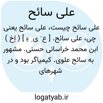 علی سائح. [ ع َ ی ِ ءِ ] ( اِخ ) ابن محمد خراسانی حسنی. مشهور به سائح علوی. کیمیاگر بود و در شهرهای مختلف مسافرت میکرد و در حدود سال 305 هَ. ق. درگذشت. او راست: 1- الاصول فی الصنعة. 2- الحجر الطاهر. 3-الحقیر النافع. 4- رسالةالیتیم. 5- الشعر و الدم و البیض. ( از معجم المؤلفین از هدیة العارفین بغدادی ج 1 ص 676 و فهرس المخطوطات المصوره کونتش ج 3 ص 37 ).