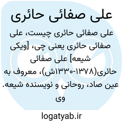 [ویکی شیعه] علی صفائی حائری(۱۳۷۸-۱۳۳۰ش)، معروف به عین صاد، روحانی و نویسنده شیعه. وی بر نگرش نظام مند به آموزه های دینی تأکید داشت و در بین نظام های اسلامی، معتقد به تقدّم نظام تربیتی بر نظام های دیگر بود. کتاب های «مسئولیت و سازندگی»، «رشد» و «صراط»، از جمله آثار مهم اوست. صفائی به هنر علاقمند بود و برخی از هنرمندان سینما و شاعران با او ارتباط داشتند. از میانه دهه ۱۳۸۰ شمسی، اندیشه های صفائی مورد توجه بخش هایی از جامعه دانشجویی در ایران بوده است.