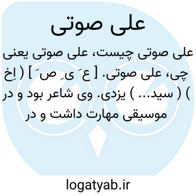 علی صوتی. [ ع َ ی ِ ص َ ] ( اِخ ) ( سید... ) یزدی. وی شاعر بود و در موسیقی مهارت داشت و در اواخر عمر از ندیمان شاه سلیمان گشته بود و در سال 1080 هَ. ق. درگذشت. او را در حدود سیصد رباعی است. ( از الذریعه آقابزرگ طهرانی ج 9 ص 620 از آتشکده یزدان ص 303 ).