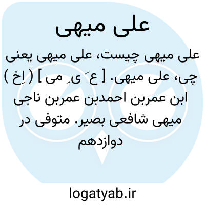 علی میهی. [ ع َ ی ِ می ] ( اِخ ) ابن عمربن احمدبن عمربن ناجی میهی شافعی بصیر. متوفی در دوازدهم ربیعالاول سال 1024 هَ. ق. در طندتاء. او راست:1- الرفائق المنظمة علی الدقائق المحکمة. 2- هدایةالصبیان لفهم بعض مشاکل القرآن. و میهی منسوب است به «میه » و آن از قرای مصر است. ( از معجم المؤلفین ).