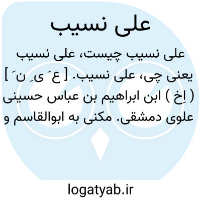 علی نسیب. [ ع َ ی ِ ن َ ] ( اِخ ) ابن ابراهیم بن عباس حسینی علوی دمشقی. مکنی به ابوالقاسم و مشهور به نسیب. وی از فضلا و محدثان دمشق بود ( 424 - 508 هَ. ق. ) و او را کتابی بنام «فوائد» درباره استادان خویش است. و نیز ده مجلد کتاب در حدیث دارد. ( از الاعلام زرکلی ).
