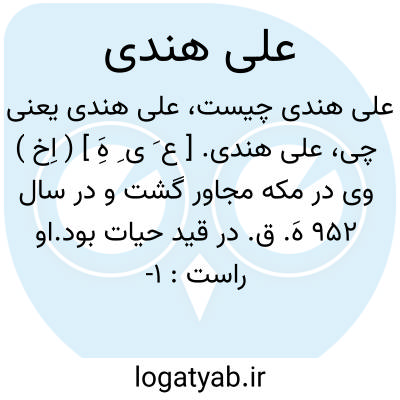 علی هندی. [ ع َ ی ِ هَِ ] ( اِخ ) ( علیرضا... ) ابن طالب هندی پیشاوری. رجوع به علیرضا ( ابن طالب... ) شود.