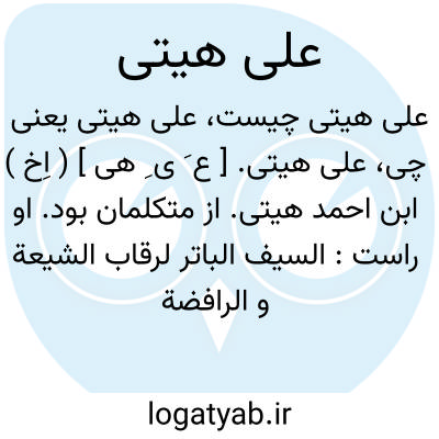 علی هیتی. [ ع َ ی ِ هی ] ( اِخ ) ابن احمد هیتی. از متکلمان بود. او راست: السیف الباتر لرقاب الشیعة و الرافضة الکوافر، که در سال 1025 هَ. ق. آن را در قسطنطنیة پایان داد. ( از معجم المؤلفین ).