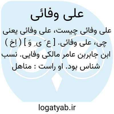 علی وفائی. [ ع َ ی ِ وَ ] ( اِخ ) ابن جابربن عامر مالکی وفایی. نسب شناس بود. او راست: مناهل الصفا باتصال نسب السادات بالنبی المصطفی، که در سال 1140 هَ. ق. از تألیف آن فراغت یافت. ( از معجم المؤلفین ).