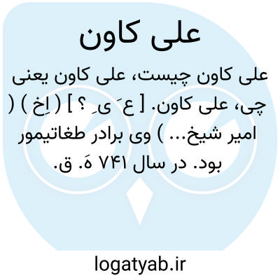 علی کاون. [ ع َ ی ِ ؟ ] ( اِخ ) ( امیر شیخ... ) وی برادر طغاتیمور بود. در سال 741 هَ. ق. این امیر شیخ علی کاون، برادر خود طغاتیمور را ملامت کرد که دو نوبت به عراق لشکر کشیده است ولی در هردو نوبت شکست خورده است و برای اینکه آن شکست ها را جبران کند، شیخ علی خود به عراق آمد ولی در حدود ابهر زنجان از سپاهیان ملک اشرف شکست خورد و به مازندران گریخت. و در همان سال از طرف برادر مأمور سرکوب سربداران شد اما در جنگی که با امیرمسعود و شیخ حسن جوری کرد به قتل رسید. ( از تاریخ مفصل ایران، مغول، عباس اقبال ص 361 و 470 ) ( حبیب السیر چ خیام ص 360 ).
