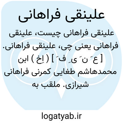 علینقی فراهانی. [ ع َ ن َ ی ِ ف َ ] ( اِخ ) ابن محمدهاشم طغایی کمرنی فراهانی شیرازی. ملقب به عزالدین. رجوع به علینقی شیرازی شود.