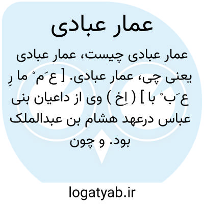 عمار عبادی. [ ع َم ْ ما رِ ع َب ْ با ] ( اِخ ) وی از داعیان بنی عباس درعهد هشام بن عبدالملک بود. و چون کار این داعیان بالاگرفت، اسدبن عبداﷲ قسری والی خراسان، چند تن از ایشان از جمله عمار عبادی را بگرفت و دست و پای ببرید. ( از تاریخ گزیده حمداﷲ مستوفی چ امیرکبیر ص 285 ).