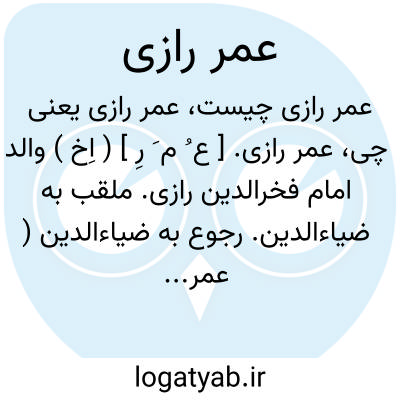 عمر رازی. [ ع ُ م َ رِ ] ( اِخ ) والد امام فخرالدین رازی. ملقب به ضیاءالدین. رجوع به ضیاءالدین ( عمر... ) شود. عمر رازی. [ ع ُ م َ رِ ] ( اِخ ) ابن احمدبن ابی بکر رازی شافعی. فقیه بود و تا سال 707 هَ.ق. در قید حیات بوده است. او راست: جامعالفتاوی فی اقوال الائمة الاربعة. ( از معجم المؤلفین ج 7 ص 273 ).
