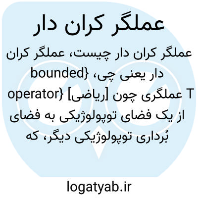 {bounded operator} [ریاضی] عملگری چون T از یک فضای توپولوژیکی به فضای بُرداری توپولوژیکی دیگر، که به ازای هر زیرمجموعۀ کران دار M از فضای اول، (M ) Tزیرمجموعه ای کران دار از فضای دوم است