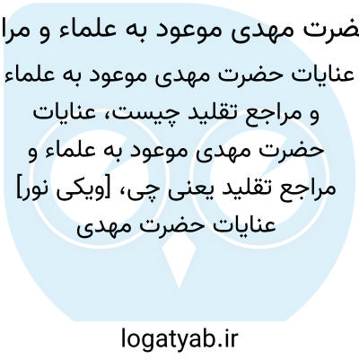 [ویکی نور] عنایات حضرت مهدی موعود (عج) به علماء و مراجع تقلید. عنایات حضرت مهدی موعود به علما و مراجع تقلید، اثر فارسی آیت الله علی کریمی جهرمی، به نشان دادن گوش های از عنایات و توجهات ولی عصر(عج) نسبت به علمای عظام و مراجع تقلید شیعه پرداخته است.
