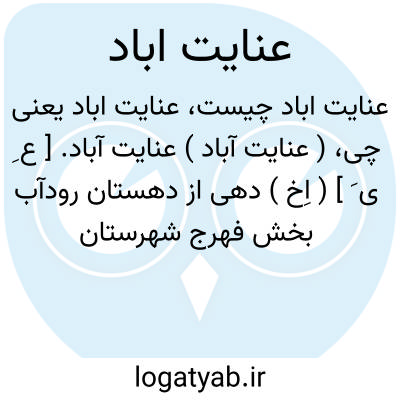 ( عنایت آباد ) عنایت آباد. [ ع ِ ی َ ] ( اِخ ) دهی از دهستان رودآب بخش فهرج شهرستان بم.سکنه آن 394 تن. آب آنجا از قنات و محصول آن خرما،حنا و پنبه است. ( از فرهنگ جغرافیائی ایران ج 8 ).