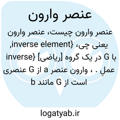 {inverse element, inverse} [ریاضی] در یک گروه G با عملِ.، وارون عنصر a از G عنصری است از G مانند b به طوری که a. b= b. a = e، که در آن e عنصر همانی گروه G است