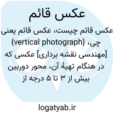 {vertical photograph} [مهندسی نقشه برداری] عکسی که در هنگام تهیۀ آن، محور دوربین بیش از 3 تا 5 درجه از امتداد قائم انحراف نداشته باشد