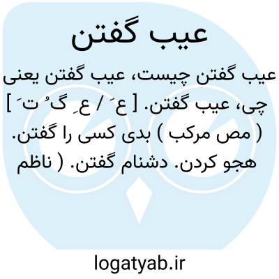 عیب گفتن. [ ع َ / ع ِ گ ُ ت َ ] ( مص مرکب ) بدی کسی را گفتن. هجو کردن. دشنام گفتن. ( ناظم الاطباء ). ایراد گرفتن. بدی و زشتی کسی بازگفتن. معایب برشمردن: چون شراب نیرو کرد... بلکاتکین را مخنث خواندندی... هرکسی را عیبی و سقطی گفتندی. ( تاریخ بیهقی ص 220 ).