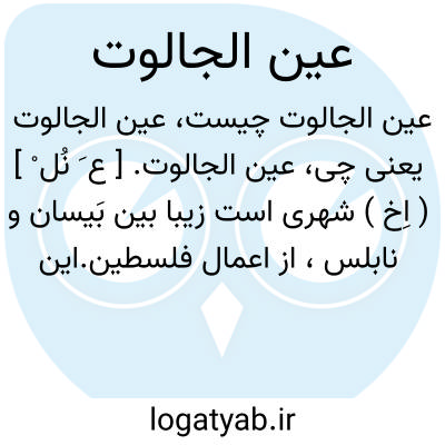 عین الجالوت. [ ع َ نُل ْ ] ( اِخ ) شهری است زیبا بین بَیسان و نابلس، از اعمال فلسطین.این شهر مدتی تحت تسلط رومیان بود، سپس بسال 579 هَ. ق. صلاح الدین یوسف بن ایوب آن را فتح کرد. عین الجالوت اسمی است اعجمی و غیرمنصرف. ( از معجم البلدان ).