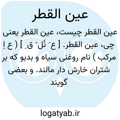 عین القطر. [ ع َ نُل ْ ق ِ ] ( ع اِ مرکب ) نام روغنی سیاه و بدبو که بر شتران خارش دار مالند. و بعضی گویند چشمه ٔگوگرد است. و بمعنی مس گداخته نیز. و گویند که چشمه مس گداخته است که حق تعالی برای سلیمان علیه السلام روان کرده بود. و نوشته اند که عین القطر روغنی است سیاه که بوی گنده دارد و بر شتران گَرگین مالند. و نیز نوشته اند که عین بمعنی چشمه و قطر مخفف قطران که بمعنی روغن درخت چیر است. ( آنندراج ) ( از غیاث اللغات ): و اَسَلْنا له عین القطر ( قرآن 12/34 )؛ و جاری کردیم برای او چشمه مس گداخته. اما روی گداخته را به تازی، که روان بود عین القطر خوانند و ایزد سبحانه و تعالی این چشمه روی کسی را نداده مگر سلیمان را. ( ترجمه طبری بلعمی ). بدهیکلی که صخر جنی از طلعت او برمیدی و عین القطر از بوی بغلش بگندیدی. ( گلستان سعدی ).