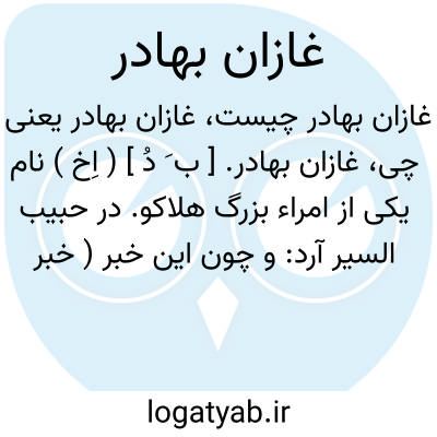 غازان بهادر. [ ب َ دُ ] ( اِخ ) نام یکی از امراء بزرگ هلاکو. در حبیب السیر آرد: و چون این خبر ( خبر بازگشتن سپاهیان هلاگو از تسخیر قلعه گردکوه ) یکی از امرای بزرگ را که مشهور بود به غازان بهادر به تأدیب شمس الملوک و استندار شهر اکیم نامزد فرمود و چون غازان بهادر به مازندران درآمد شمس الملوک مرکز دولت خالی گذاشت و شهراکیم نیز نخست خیال گریز کرده بالاخره نزد غازان رفت و از تقصیر خدمت لوازم اعتذار و استغفار به تقدیم رسانید و غازان او را مشمول نظر اشفاق گردانیده چون این معنی بر ضمیر شمس الملوک واضح گشت او نیز به خدمت غازان شتافت. غازان از دیوان خان منشور حکومت ایشان را امضا فرموده خود در آمل ساکن گشت... ( حبیب السیر چ خیام طهران ج 3 ص 331 ).