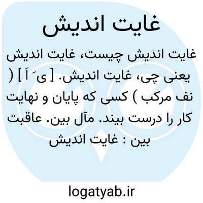 غایت اندیش. [ ی َ اَ ] ( نف مرکب ) کسی که پایان و نهایت کار را درست بیند. مآل بین. عاقبت بین: