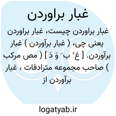 ( غبار برآوردن ) غبار برآوردن. [ غ ُ ب َ وَ دَ ] ( مص مرکب ) صاحب مجموعه مترادفات، غبار برآوردن از چیزی را مترادف خراب و ویران شدن و ویران کردن خانه و جز آن آورده است. رجوع به مجموعه مزبور ص 138 شود.