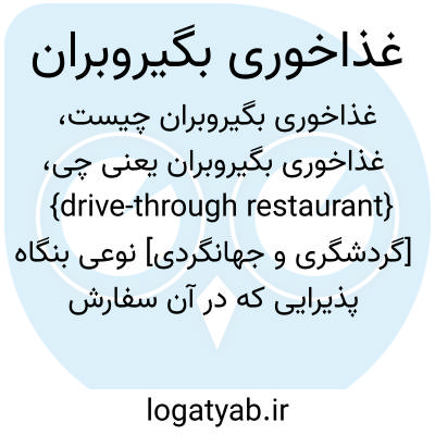{drive-through restaurant} [گردشگری و جهانگردی] نوعی بنگاه پذیرایی که در آن سفارش سرنشینان خودروها ازطریق باجه در اختیار آنها قرار می گیرد تا در جای دیگر صرف کنند متـ. رستوران بگیروبِران