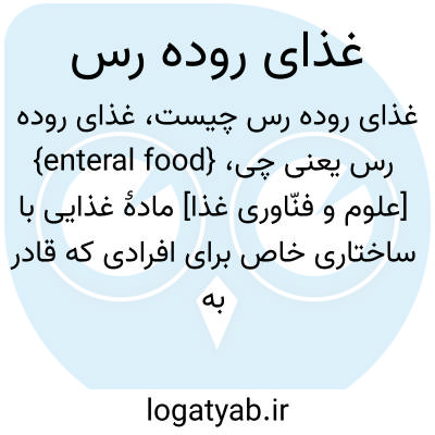 {enteral food} [علوم و فنّاوری غذا] مادۀ غذایی با ساختاری خاص برای افرادی که قادر به خوردن مواد غذایی معمولی نیستند و غذا را ازطریق لوله وارد رودۀ آنها می کنند
