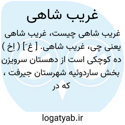 غریب شاهی. [ غ َ] ( اِخ ) ده کوچکی است از دهستان سرویزن بخش ساردوئیه شهرستان جیرفت، که در 15 هزارگزی جنوب خاوری سارودئیه سر راه مالرو جیرفت به ساردوئیه قرار دارد. سکنه آن پنج تن است. ( از فرهنگ جغرافیائی ایران ج 8 ).