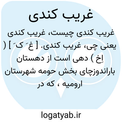 غریب کندی. [ غ َ ک َ ] ( اِخ ) دهی است از دهستان باراندوزچای بخش حومه شهرستان ارومیه، که در 16هزارگزی جنوب خاوری ارومیه و 500گزی باختر راه ارابه رو ترکمان قرار دارد زمین آن جلگه و هوای آن معتدل است و دارای 66 تن سکنه است که شیعه اند و به زبان ترکی سخن می گویند. آب آن ازباراندوزچای تأمین می شود و محصول آنجا غلات، توتون،چغندر، حبوبات، انگور است و شغل اهالی زراعت و صنایع دستی جوراب بافی است. در تابستان از راه ارابه رو میتوان اتومبیل برد. ( از فرهنگ جغرافیائی ایران ج 4 ).