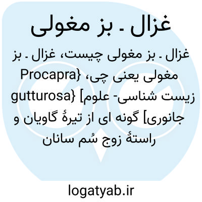 {Procapra gutturosa} [زیست شناسی- علوم جانوری] گونه ای از تیرۀ گاویان و راستۀ زوج سُم سانان که پشت آن قهوه ای تیره است و لکه ای صنوبری شکل و سفید بر روی کفل دارد و رنگ قهوه ای و سفید آن به تدریج در نواحی زیرین بدن روشن تر می شود