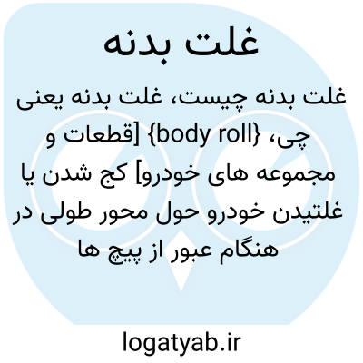{body roll} [قطعات و مجموعه های خودرو] کج شدن یا غلتیدن خودرو حول محور طولی در هنگام عبور از پیچ ها