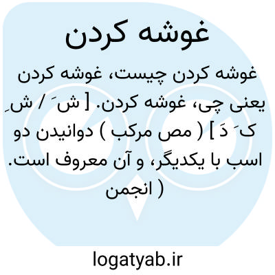 غوشه کردن. [ ش َ / ش ِ ک َ دَ ] ( مص مرکب ) دوانیدن دو اسب با یکدیگر، و آن معروف است. ( انجمن آرا ) ( آنندراج ذیل غوش ). با کلمه غوش بمعنی اسب جنیبت بی مناسبت نیست، و در ترکی آذربایجانی غوشماق یا قوشماق بمعنی بستن دو یا چند چارپا به گاری یا درشکه و جز آن است و غوشا یا قوشا غالباً بمعنی همراه و جفت می آید، و معلوم نیست که ترکی است یا از فارسی گرفته شده است.