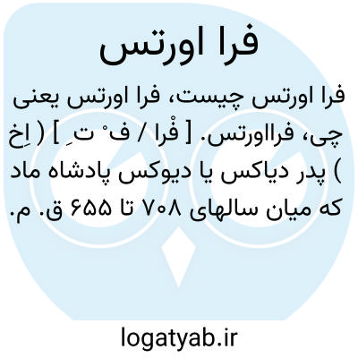 فرااورتس. [ فْرا / ف ْ ت ِ ] ( اِخ ) پدر دیاکس یا دیوکس پادشاه ماد که میان سالهای 708 تا 655 ق. م. پادشاهی کرد. رجوع به ایران باستان ج 1 ص 176 شود.
