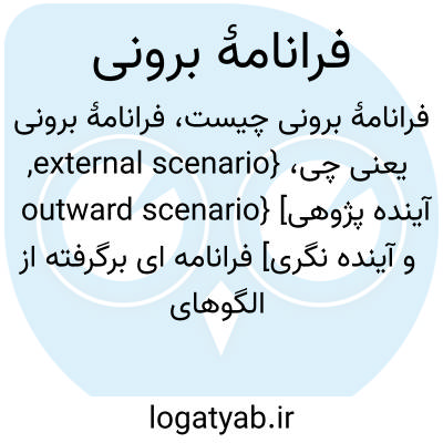 {external scenario, outward scenario} [آینده پژوهی و آینده نگری] فرانامه ای برگرفته از الگوهای ذهنی دنیای بیرونی که شماری از آینده های ممکن را ترسیم می کند