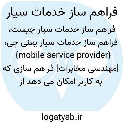 {mobile service provider} [مهندسی مخابرات] فراهم سازی که به کاربر امکان می دهد از چند جا به اطلاعات و خدماتِ انتقال و پردازش آنها دسترسی یابد