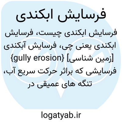 {gully erosion} [زمین شناسی] فرسایشی که براثر حرکت سریع آب، تنگه های عمیقی در سطح زمین به وجود می آورد متـ. آبکَندی شدگی gullying