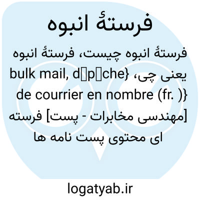 {bulk mail, dépêche de courrier en nombre (fr. )} [مهندسی مخابرات - پست] فرسته ای محتوی پست نامه ها که فرستنده ای واحد آن را به صورت انبوه و برطبق مقررات آیین نامۀ پست نامه ها به پست تحویل می دهد