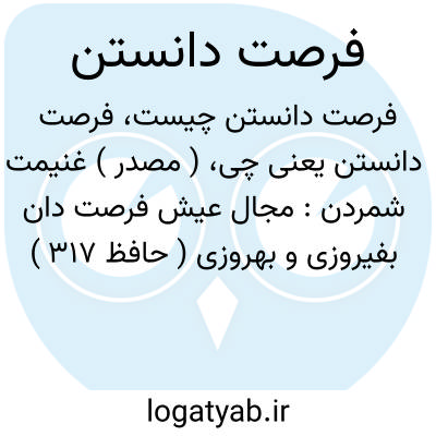 ( مصدر ) غنیمت شمردن: مجال عیش فرصت دان بفیروزی و بهروزی ( حافظ ۳۱۷ )