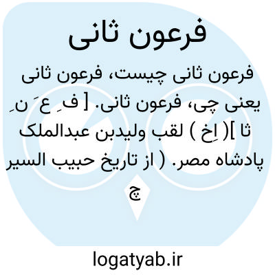 فرعون ثانی. [ ف ِ ع َ ن ِ ثا ]( اِخ ) لقب ولیدبن عبدالملک پادشاه مصر. ( از تاریخ حبیب السیر چ قدیم تهران ج 1 ص 253 ). این شخص نامش ولیدبن عبدالملک نبوده است و شاید منظور از فرعون ثانی رامسس دوم باشد. رجوع به تاریخ ملل شرق آلبر ماله و ژول ایزاک ترجمه عبدالحسین هژیر ص 25 به بعد و نیز رجوع به فراعنه و فرعون موسی در همین لغت نامه شود.