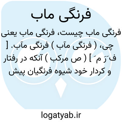 ( فرنگی مآب ) فرنگی مآب. [ ف َرَ م َ ] ( ص مرکب ) آنکه در رفتار و کردار خود شیوه فرنگیان پیش گیرد. کسی که به طرز فرنگی زندگی کند.