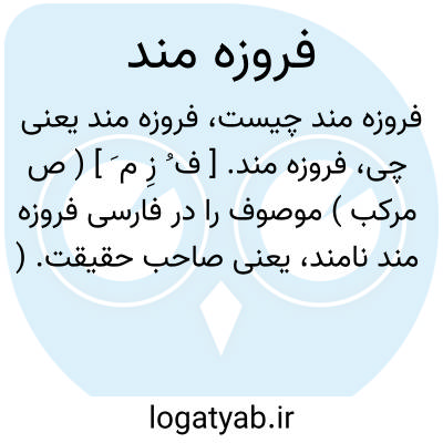 فروزه مند. [ ف ُ زِ م َ ] ( ص مرکب ) موصوف را در فارسی فروزه مند نامند، یعنی صاحب حقیقت. ( انجمن آرا ) ( آنندراج از فرهنگ دساتیر ). برساخت فرقه آذرکیوان.
