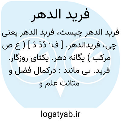 فریدالدهر. [ ف َ دُدْ دَ ] ( ع ص مرکب ) یگانه دهر. یکتای روزگار. فرید. بی مانند: درکمال فضل و متانت علم و تبحر در معقول و منقول فریدالدهر و یگانه روزگار بود. ( ترجمه تاریخ یمینی ).
