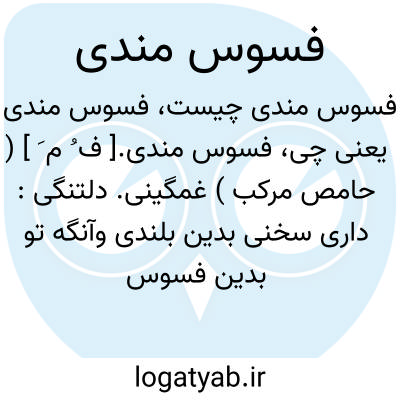 فسوس مندی.[ ف ُ م َ ] ( حامص مرکب ) غمگینی. دلتنگی: