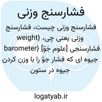 {weight barometer} [علوم جَوّ] فشارسنجی جیوه ای که فشار جوّ را با وزن کردن جیوه در ستون شیشه ای یا کیسه ای ثبت می کند