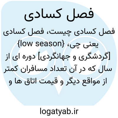 {low season} [گردشگری و جهانگردی] دوره ای از سال که در آن تعداد مسافران کمتر از مواقع دیگر و قیمت اتاق ها و کرایۀ وسایل نقلیه ارزان تر است