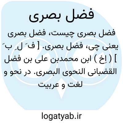 فضل بصری. [ ف َ ل ِ ب َ ] ( اِخ ) ابن محمدبن علی بن فضل القضبانی النحوی البصری. در نحو و لغت و عربیت فاضل بود، کتابی در نحو نوشت و او راست: حواشی صحاح و کتاب الامالی و کتاب الصفوة فی اشعار العرب. ( از روضات الجنات ص 524 ). از مردم بصره و نابینا بود. وفاتش بسال 444 هَ. ق. / 1052 م. اتفاق افتاد. ( از الاعلام زرکلی ).